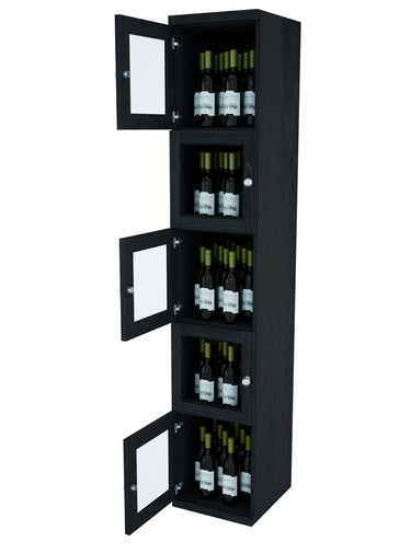 Five Level - Wine Storage Lockers With Fixed Shelves & Glass Door